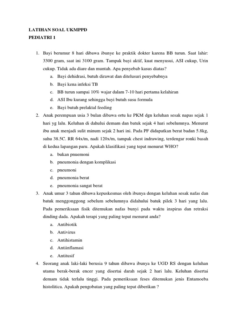 2017 soal ukmppd dan pembahasan pdf soal ukdi dan. Seorang perempuan 25 tahun datang dengan luka seperti luka. Tanda vital dalam batas normal. Contoh soal ukdi anak (pediatri) 1.seorang anak, 14 tahun, datang dengan keluhan utama demam. Download & view soal ukmppd kardiologi dan forensik as pdf for free.